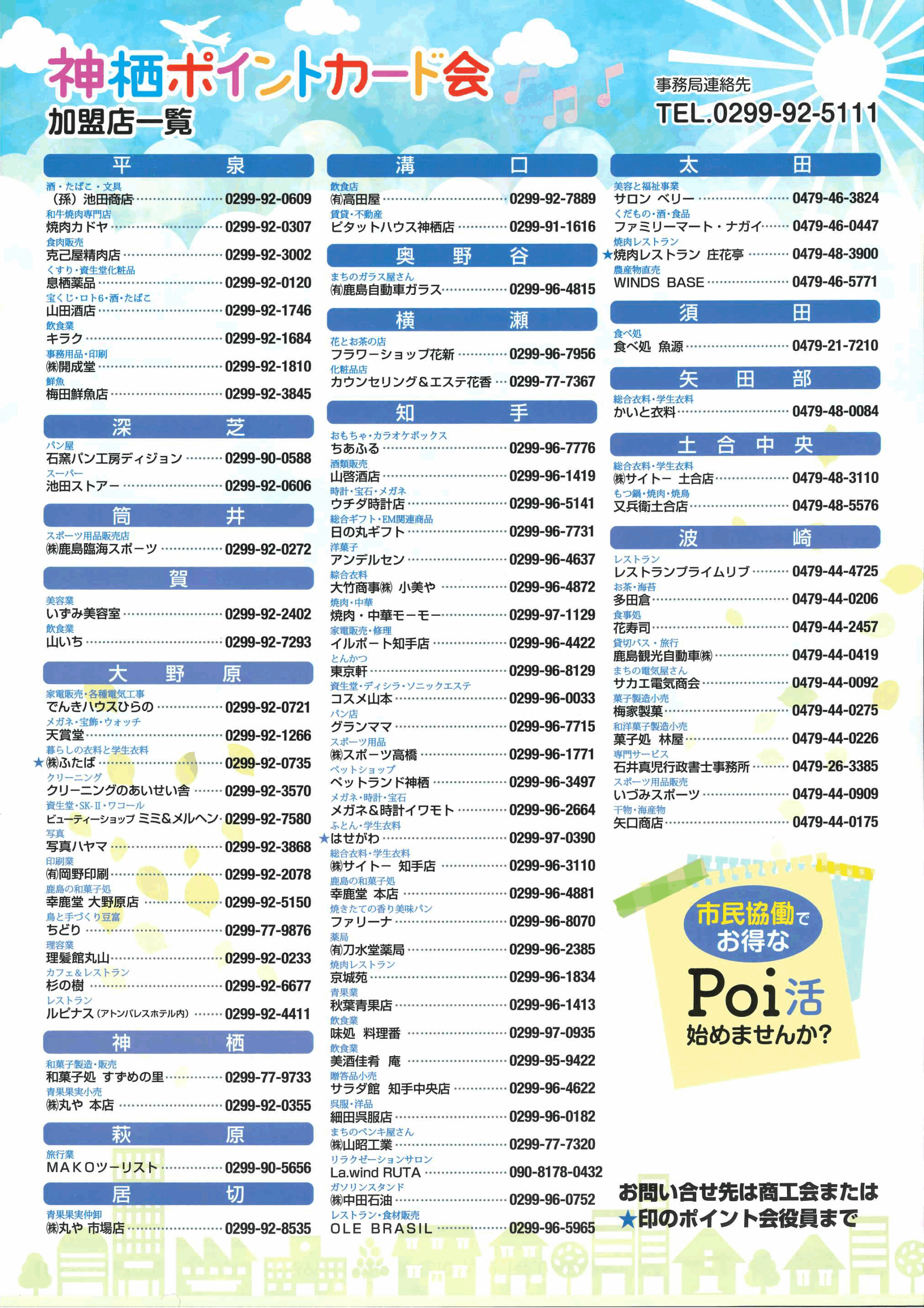 楽しいお買物で総額400,000円分のポイントプレゼント 2025.05.092025.05.09NEWS HOME ブログ NEWS 楽しいお買物で総額400,000円分のポイントプレゼント 令和7年5月17日(土)から発行終了まで 楽しいお買い物で総額400,000円分のポイントをどなたでも抽選でプレゼント!! 500ポイントが延べ150名様 200ポイントが延べ800名様 100ポイントが延べ1,650名様 に当たります!! ※当選した際は、ファンファーレでお知らせします。 ※抽選結果はレシートにて確認が可能です。 イベント期間:総額40万ポイントが発行した時点で終了となります。 ご注意:1回のお買い物で当選は1回です。また次のお買い物で当選の可能性は発生します。 以下にポスターと共にご利用可能店舗等の情報をご案内いたしますので、ぜひご確認いただき、周知にもご協力いただければ幸いです! 折込チラシ(5月17日新聞折込) ※チラシ画像をクリック(タップ)で拡大します。 ご利用案内(リンク案内) かみすポイントカード会加盟店のご紹介 加盟店のご紹介 Post Share Hatena Line RSS feedly Pin it note 投稿者: 神栖ポイントカード会事務局 NEWS コメント: 0 楽しいお買物で総額400,000円分のポイントプレゼント 「ご当地ペイ」にて、神栖ポイントカード会を紹介していただきました! コメント ( 0 ) トラックバックは利用できません。 この記事へのコメントはありません。 返信をキャンセルする。 名前 E-MAIL ※ 公開されません URL Δ 関連記事一覧 楽しいお買い物で総額500,000円分のポイントプレゼント 2023.09.13NEWS 楽しいお買い物で総額550,000円分のポイントプレゼント!... 2023.05.15NEWS かみすフェスタ2025出店!! 2025.10.16NEWS カードご利用案内・加盟店入会方法をアップしました 2021.10.24NEWS